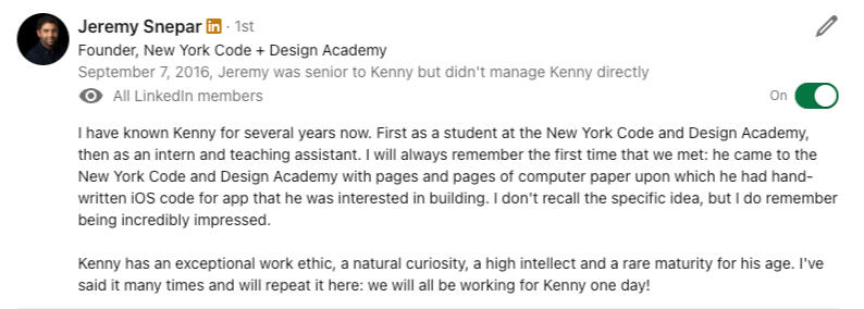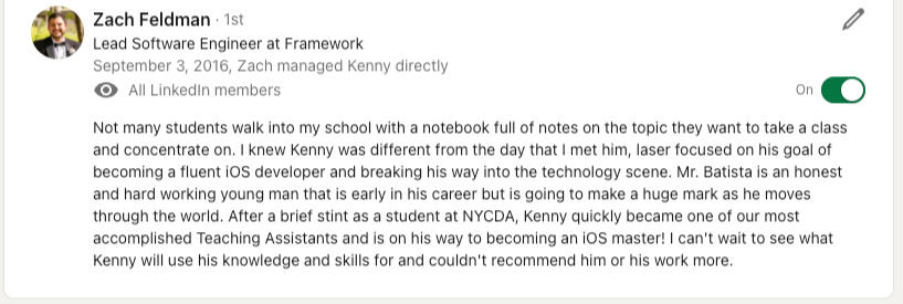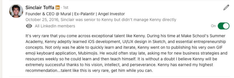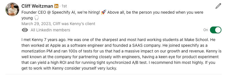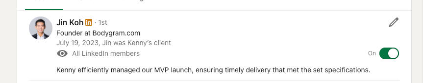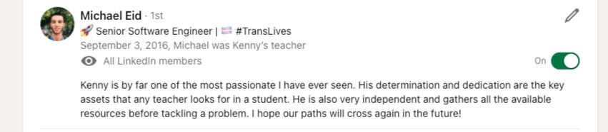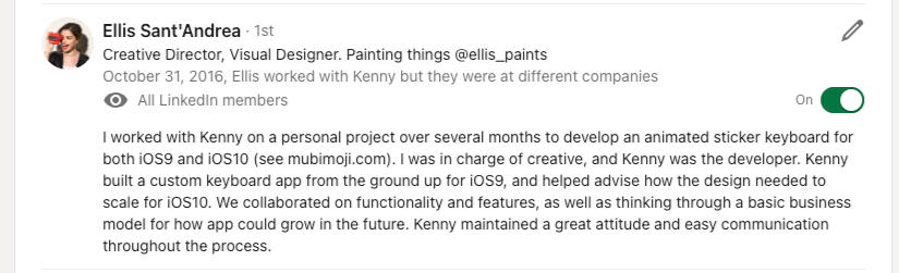 Below you can find recommendations from people/clients i've worked with. You can also find them directly on my LinkedIn profile (scroll all the way down)