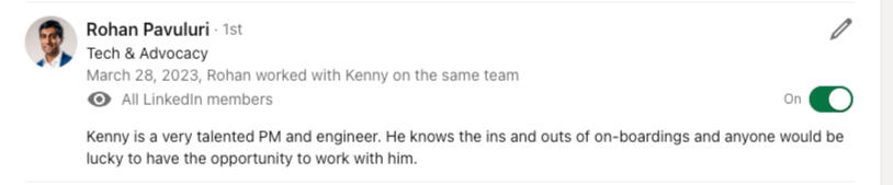 👋 I'm KennyI am a Technical Product Manager with a background in Software Engineering. My goal is to find product-market fit, whether it is on a micro or macro scale. I have a data-driven principles & process approach to problem solving. And as always, a focus on people over pixels.Hobbies: working out, hiking, meditating, and traveling.