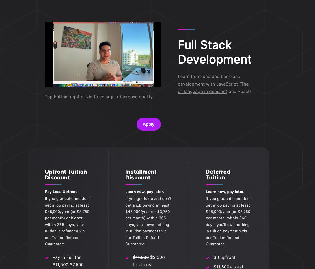 As part of my learning on how to run & scale programmatic ads, I built and taught a coding bootcamp that teaches aspiring software engineers how to do full-stack web development. Stack: PostgreSQL, Express, ReactJS, Node. Was able to retain a 10x return on ad spend.